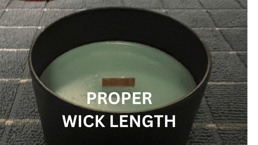 The very first thing is to ensure that before lighting your candle for the first time, that the wick is trimmed to the proper length. That is about ¼ inch for cotton wicks and between ⅛ and ¼ inch for wooden wicks. The temptation is naturally to have a lot of wick showing for a good flame. However, it’s the wax being drawn up through the wick that provides most of it.
