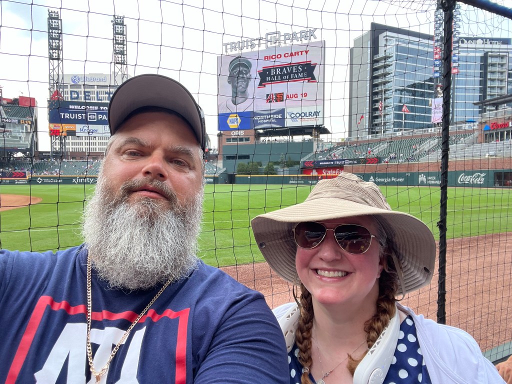 Leah said I need to post pictures when I update the site, so here is a random picture of us at a Braves game.